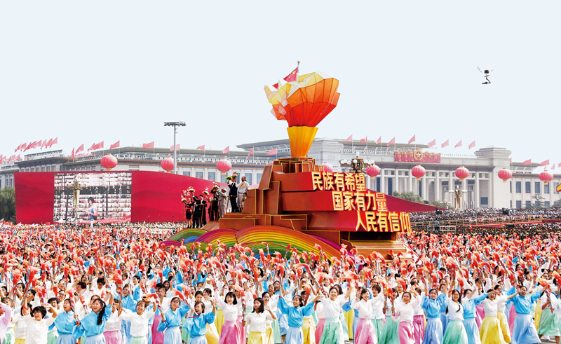 “我們的人民共和國茁壯成長,正以嶄新的姿態屹立于世界東方”。在以習近平同志為核心的黨中央堅強領導下,有偉大的人民、偉大的民族、偉大的民族精神,中國一定能夠在實現民族復興的道路上風雨無阻、高歌行進!